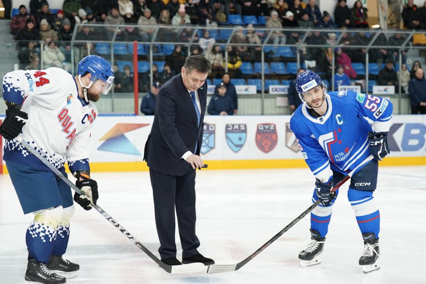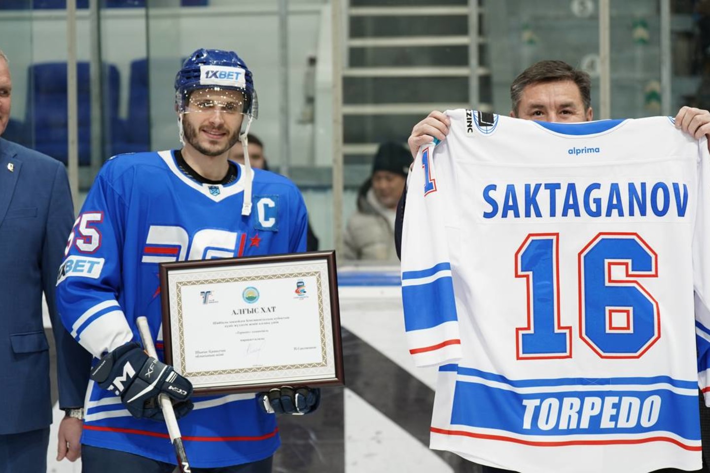 Одан соң Нұрымбет Сақтағанов Алғыс хат табыстап, өскемендік хоккейшілер мен Петропавлдан келген "Құлагер" командасының ойыны алдында символикалық шайба тастау рәсімін өткізді.