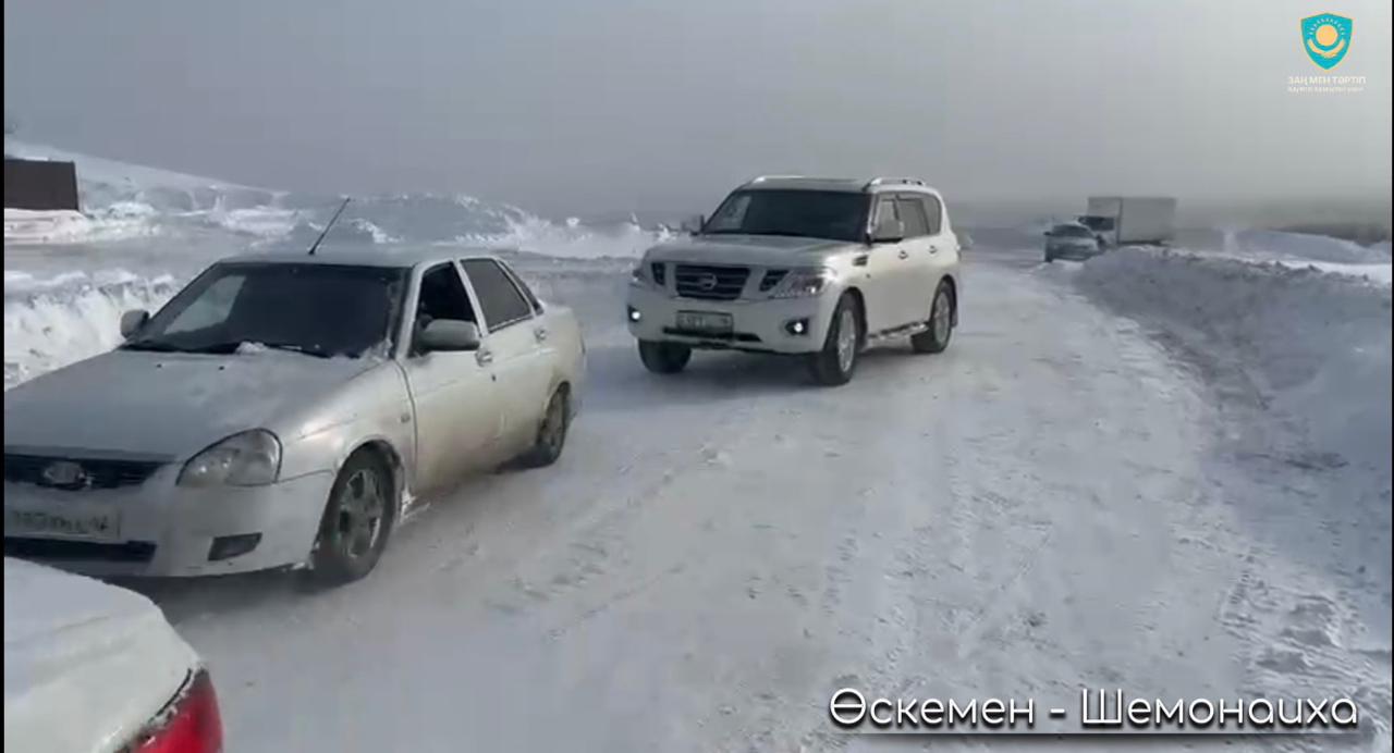 Наиболее критичная обстановка наблюдалась вблизи села Герасимовка, где скопилось около 150 машин. Из-за снежных заносов автомобили не могли двигаться дальше. Батальон патрульной полиции восточноказахстанского департамента полиции взял ситуацию под управление. Полицейские направляли водителей в условиях плохой видимости, регулировали движение и обеспечивали безопасный проезд по самым проблемным участкам трассы.