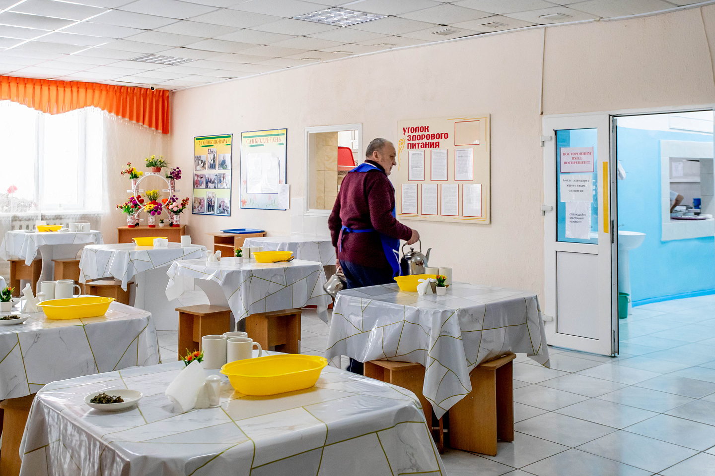 Нам навстречу выходит руководитель учреждения Жаныбек Шаянбаев. Директор предлагает нам сразу отправиться на экскурсию, ведь скоро обед и его подопечные не должны пропускать прием пищи.