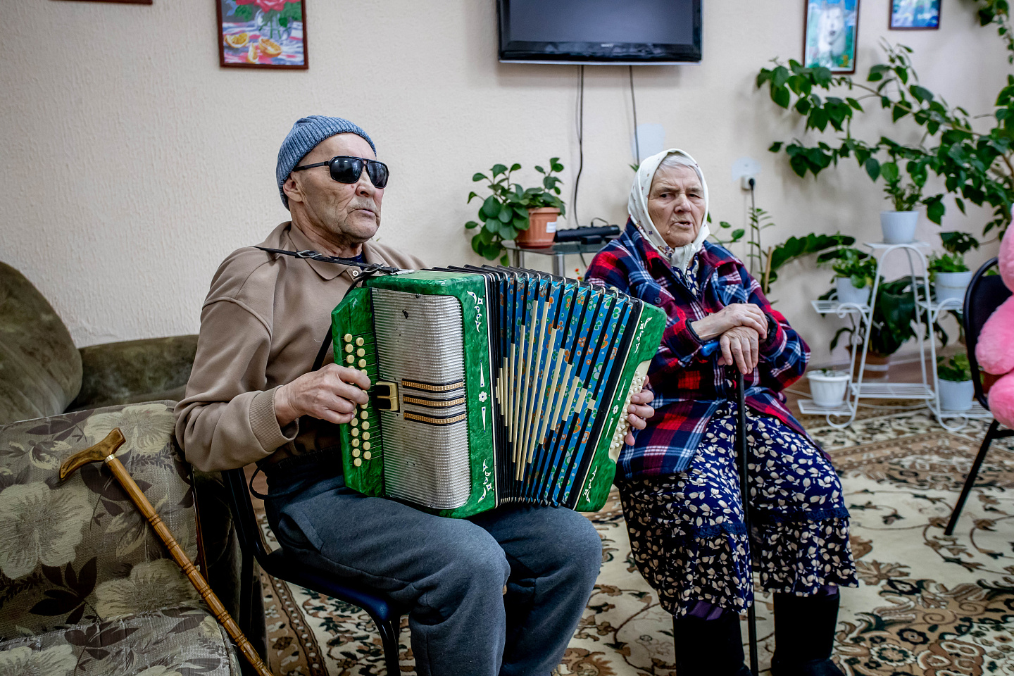 Мне 70 лет и у меня никого нет. Случилось несчастье, я потерял руки и ноги, так сюда и попал. Прям из больницы забрали. Здесь мне очень нравится. Если что-то случится, можно в любой момент обратиться к медсестрам или санитарам. Они всегда помогут, выслушают, если нужно выговориться. Позовут врача, если что-то болит. Знаете, здесь очень хорошо кормят – четыре раза в день, поэтому приходится заниматься спортом, - улыбается Алексей Григорьевич. - Никогда не бывает скучно, можно любое дело найти по своему вкусу. Кстати, я пою. И так и на концертах.