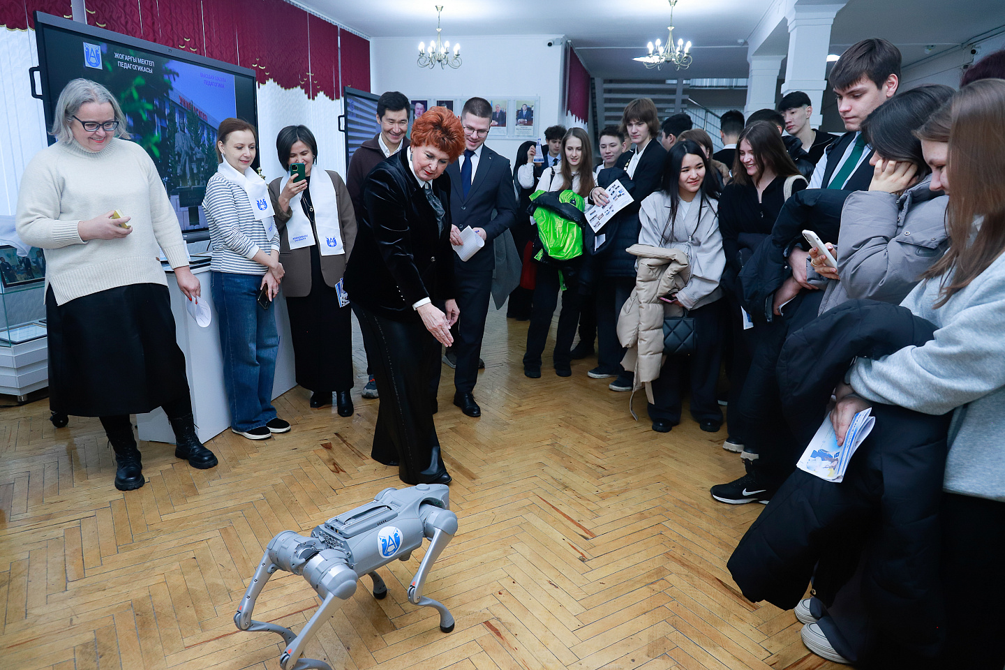 Школьники поучаствовали в экспериментах, "управляли" огнем, а также обаятельным и технологичным роботом-собакой по имени Чипик, который двигался, реагировал на команды, демонстрировал чудеса "дрессировки".
