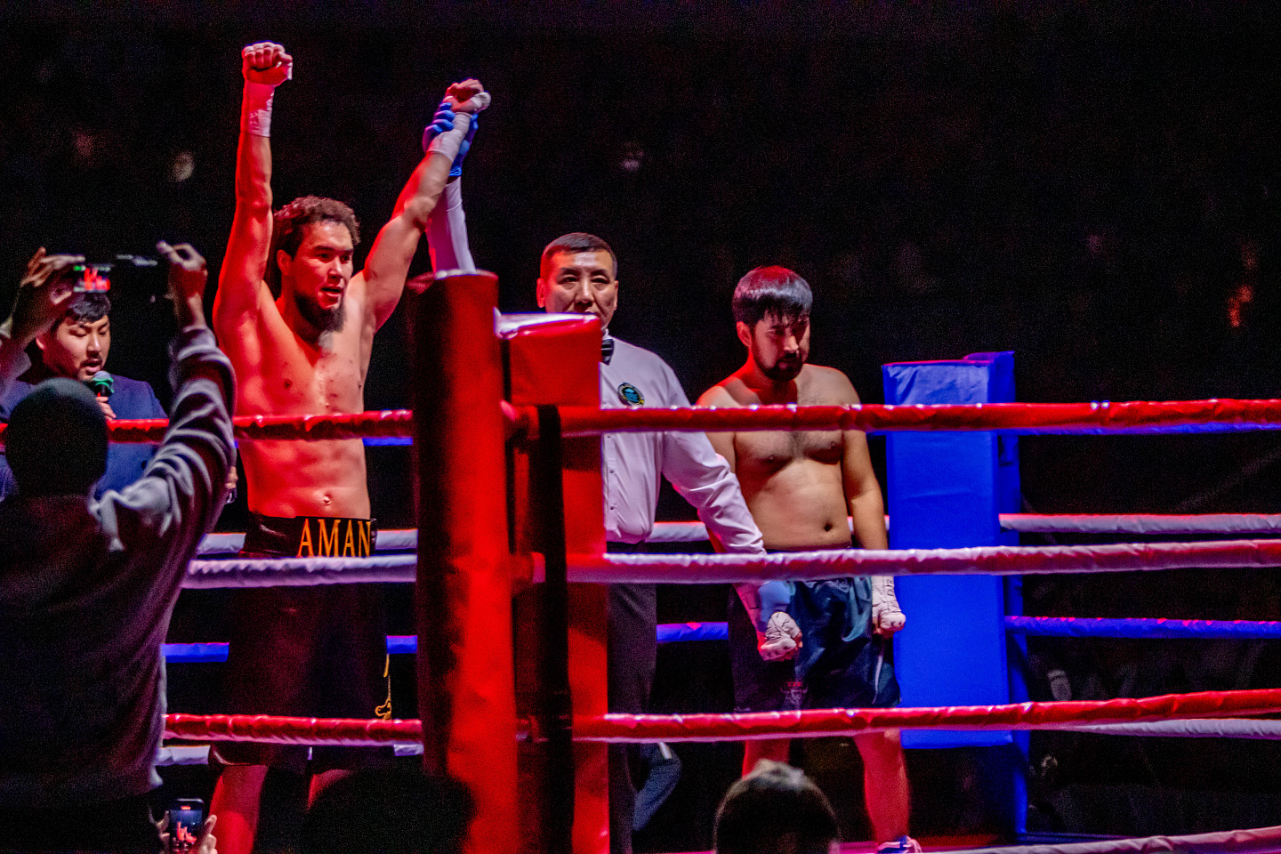 Болельщики с интересом ждали схватку между хедлайнерами турнира: казахстанцем Мухитом Амантаевым и кыргызстанцем Маратом Ишеналы уулу. Амантаев известен громкими медийными скандалами и считается самым обсуждаемым боксером в соцсетях. Его противник – один из опытных представителей кыргызской школы бокса. Мухиту Амантаеву удалось завершить бой уже на первой минуте. Серией ударов по корпусу он отправил противника в нокаут. Это была одна из коротких и зрелищных схваток за вечер.